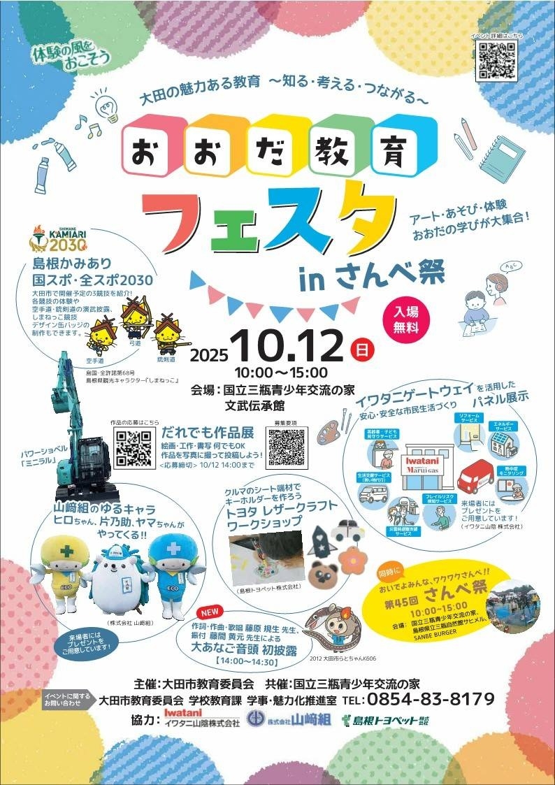 10月12日(日)におおだ教育フェスタinさんべ祭あります‼️