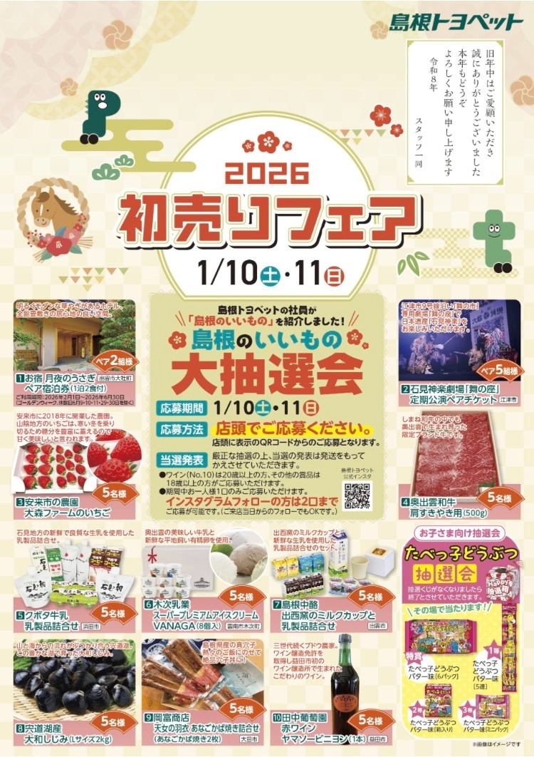 1/10(土)・1/11(日)の2日間、島根のいいもの大抽選会をおこないます✨