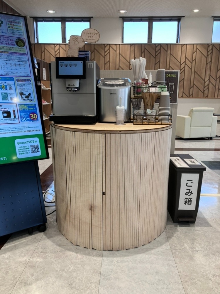 実際に大田店のショールームを見学していただき、木に触れやすい場所の木質化する場所を選択しました。今回は、フリードリンクコーナーのテーブルを木質化しました。